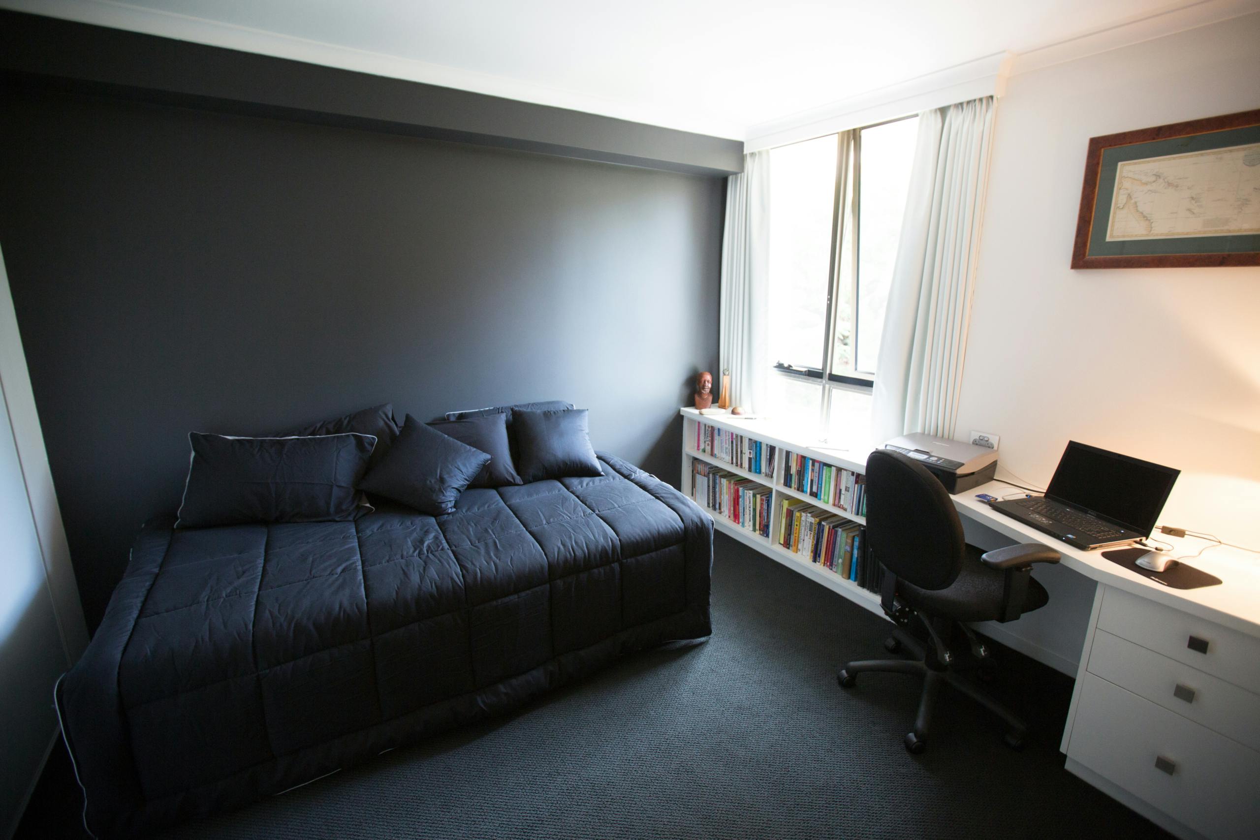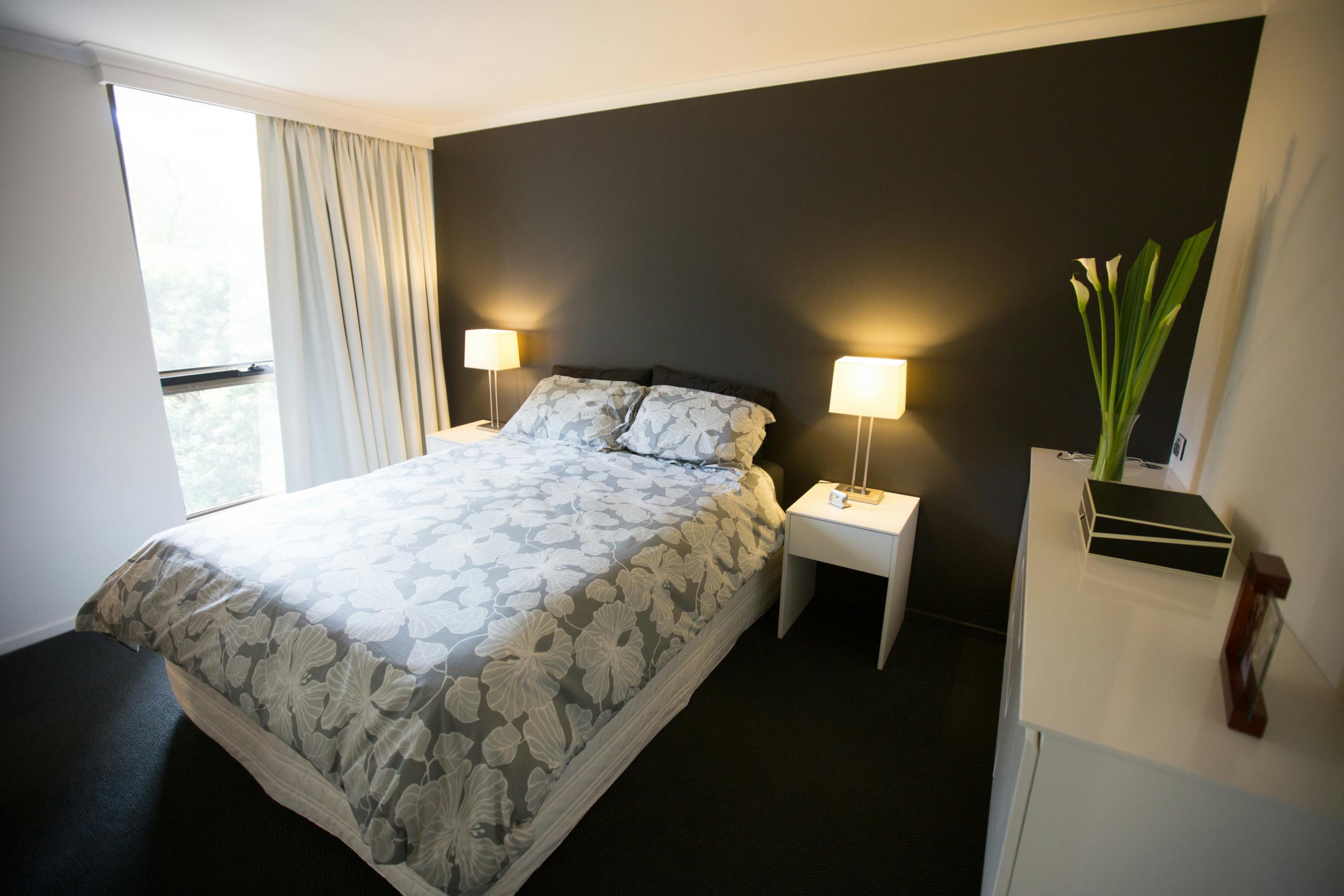 This beautifully renovated and decorated waterfront unit in Kangaroo Point comes to life with a combination of carefully selected whites and bold feature walls and furnishings. The owners of this unit worked with our colour consultant to create a setting that is both sophisticated and dramatic. Our painting team was required to work around furniture and with strict time constraints which they were able to do with no hassle. The end result of this house painting project was memorable.