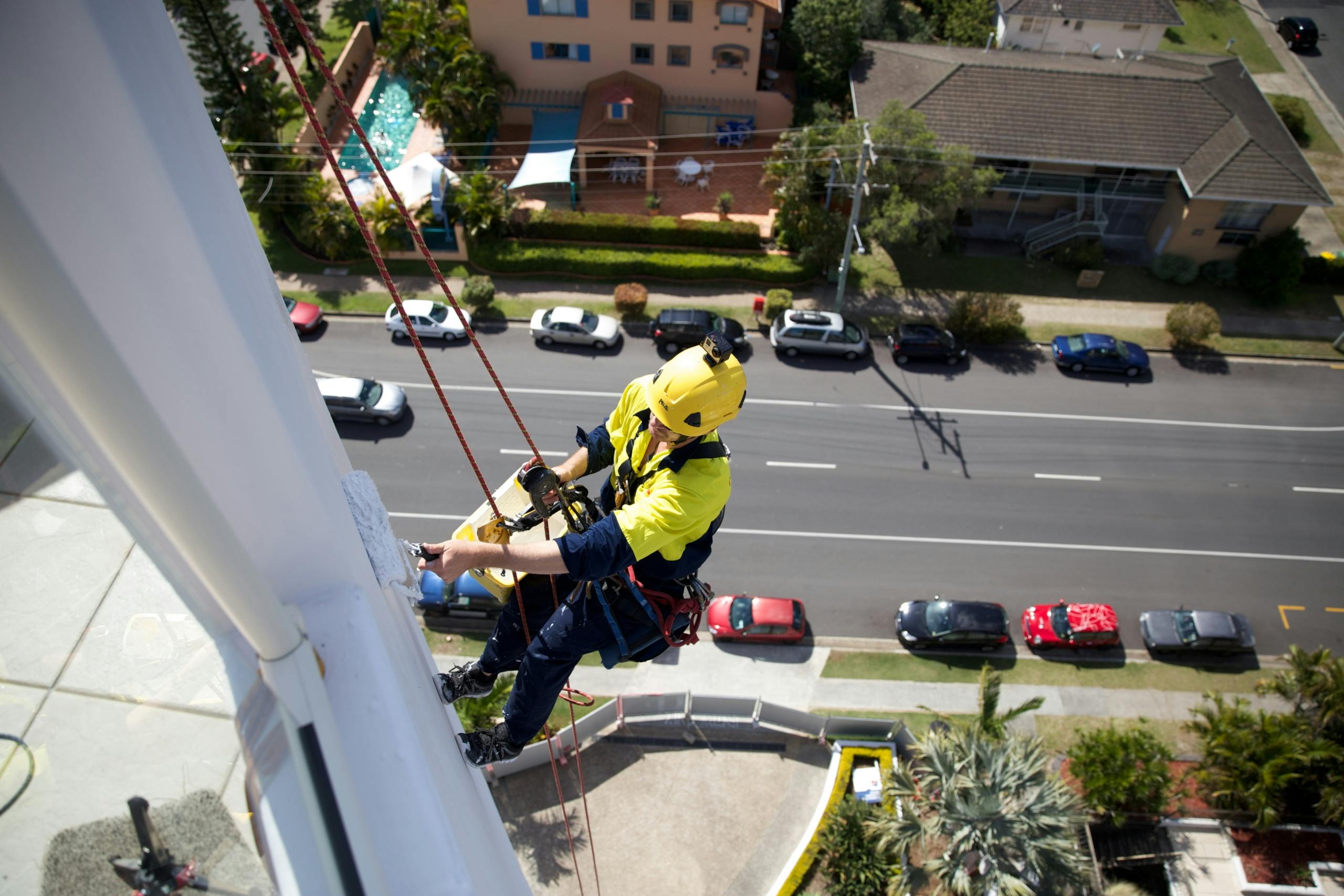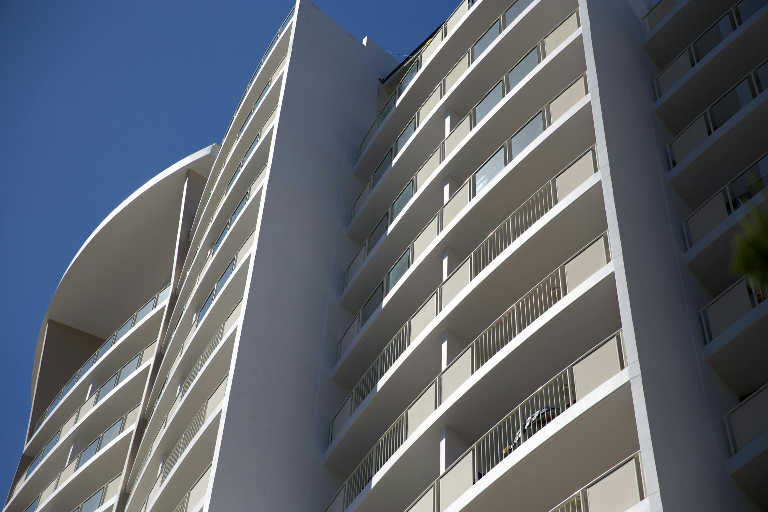 All high-rise painting projects have their hurdles. On this project it was painting the penthouse eaves and soffits which protrude beyond the balcony floor making access near impossible. An elevated work platform (EWP) with an enormous 60 metre reach was utilised for over a week to get the job done.