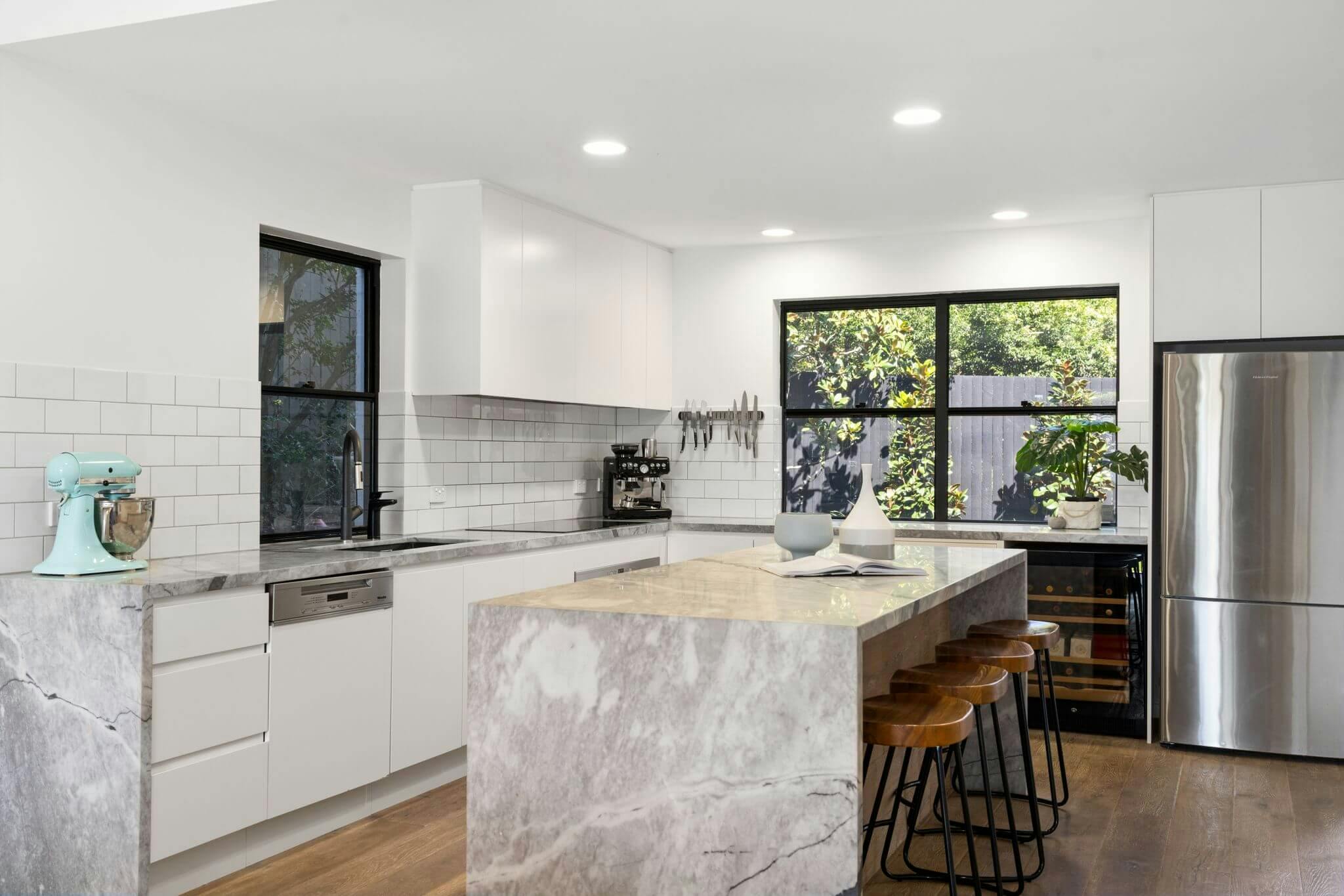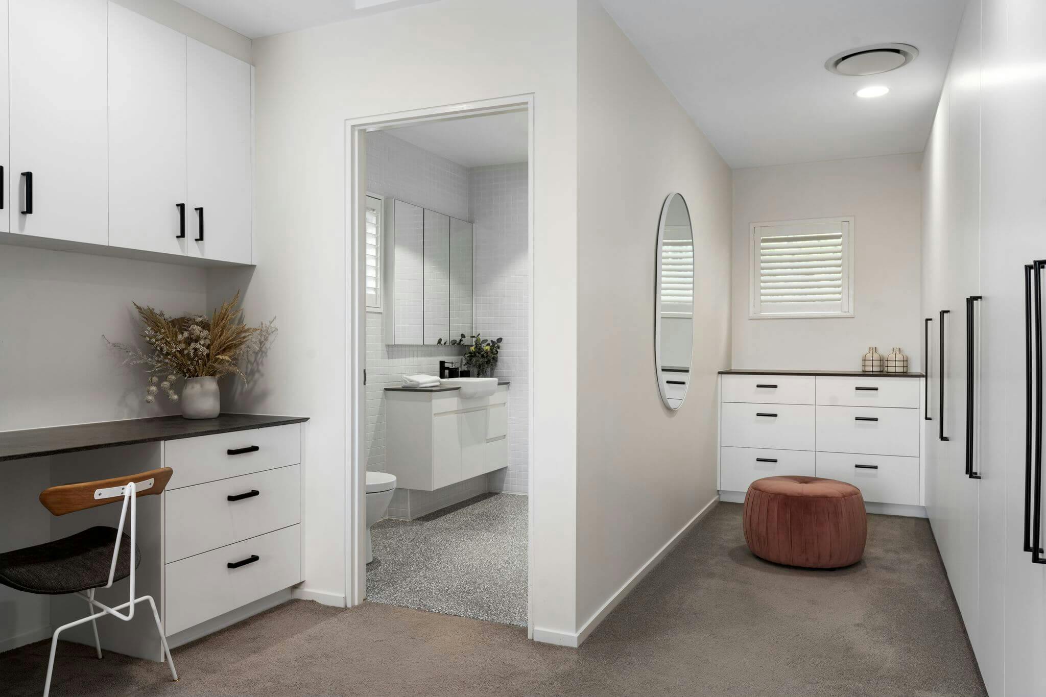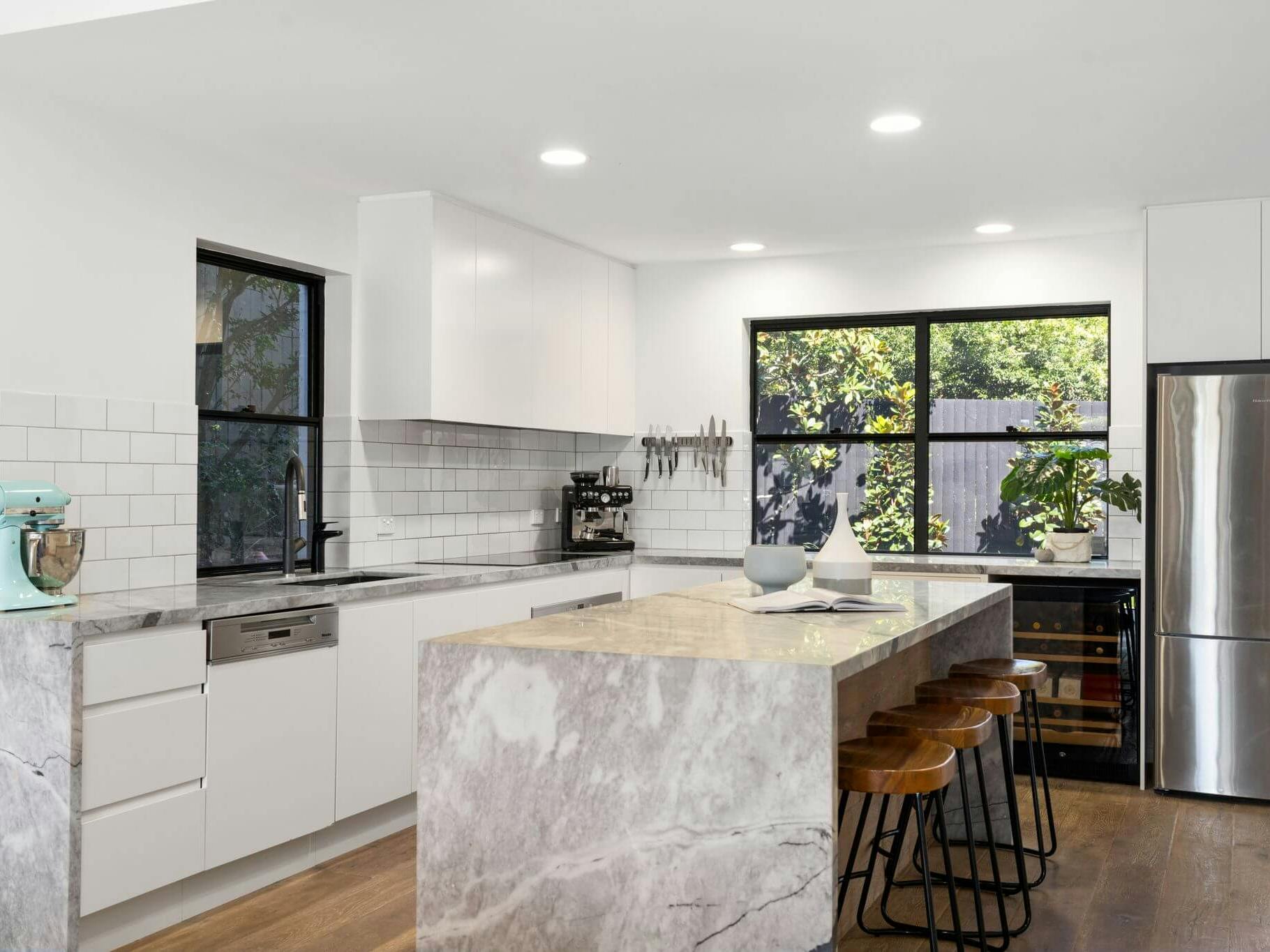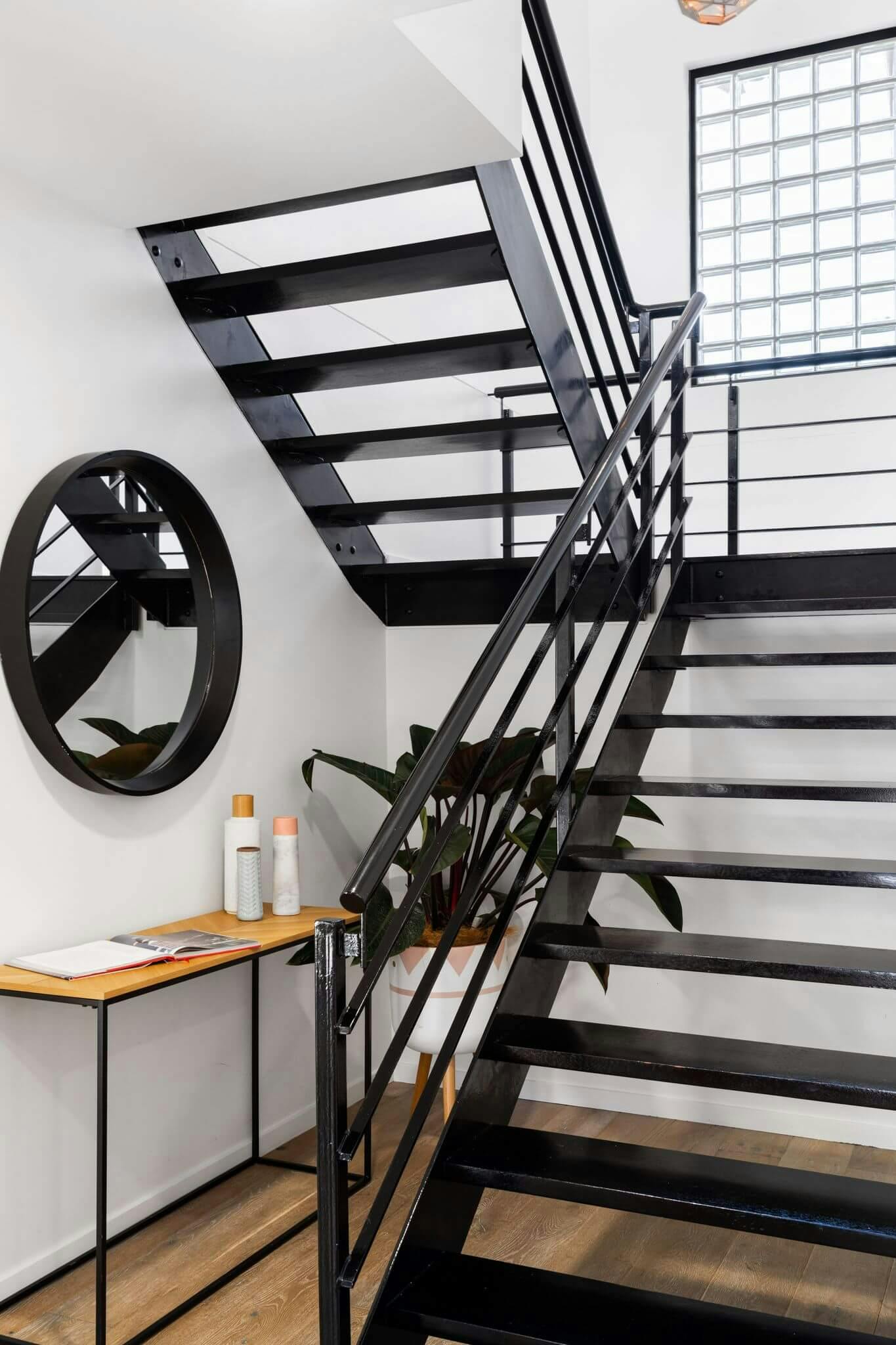 This Cottee-Parker designed family home in Clayfield, Brisbane had a complete makeover and Rochele completed both the interior and exterior painting. Originally a peach colour on the exterior, Rochele Decorating, assisted with a more modern colour scheme really highlighting the details of the building. The colour scheme of grey, white and black was carried out throughout the property seeing the internal staircase being transformed from an original timber to a black stained masterpiece.