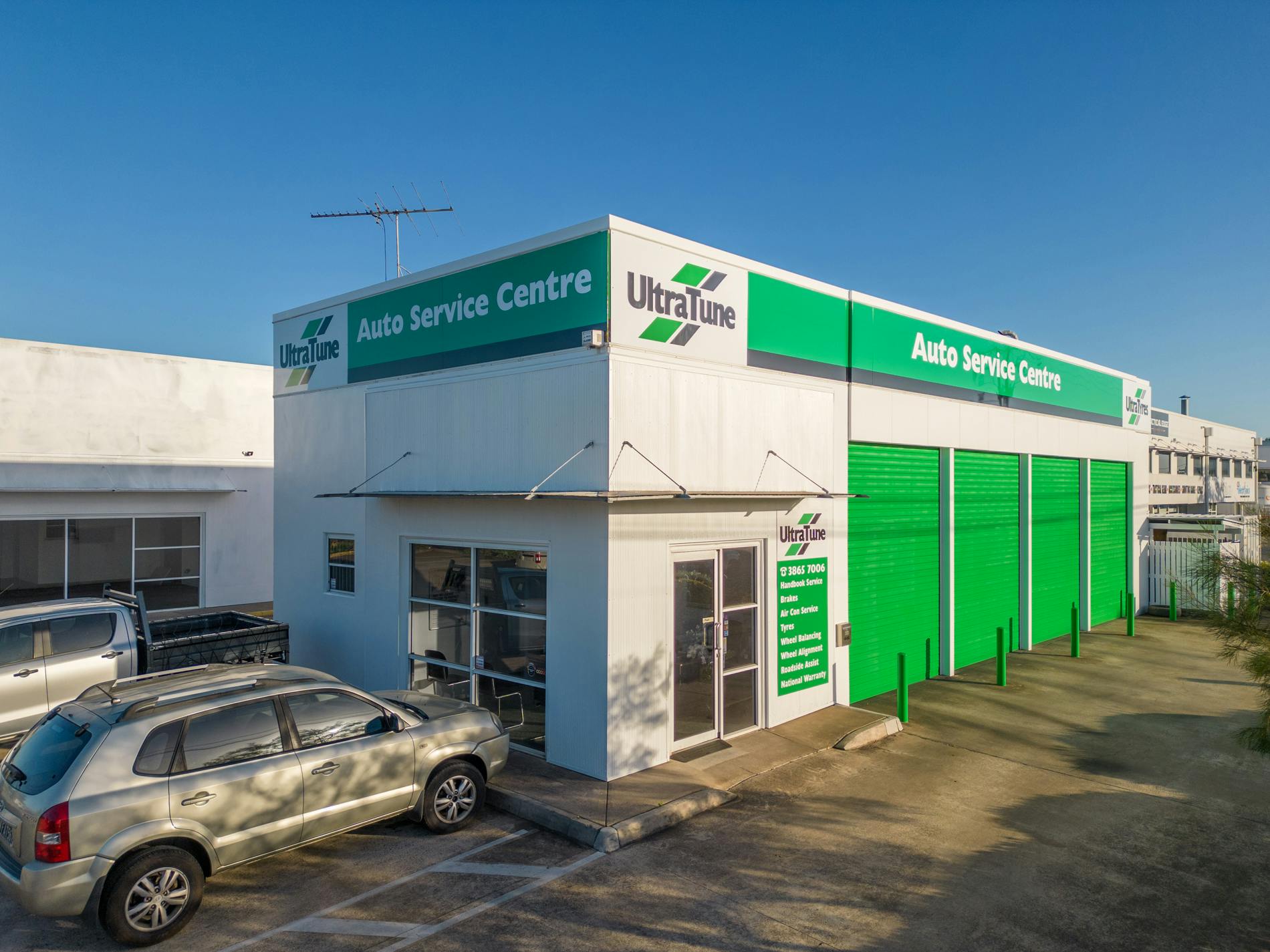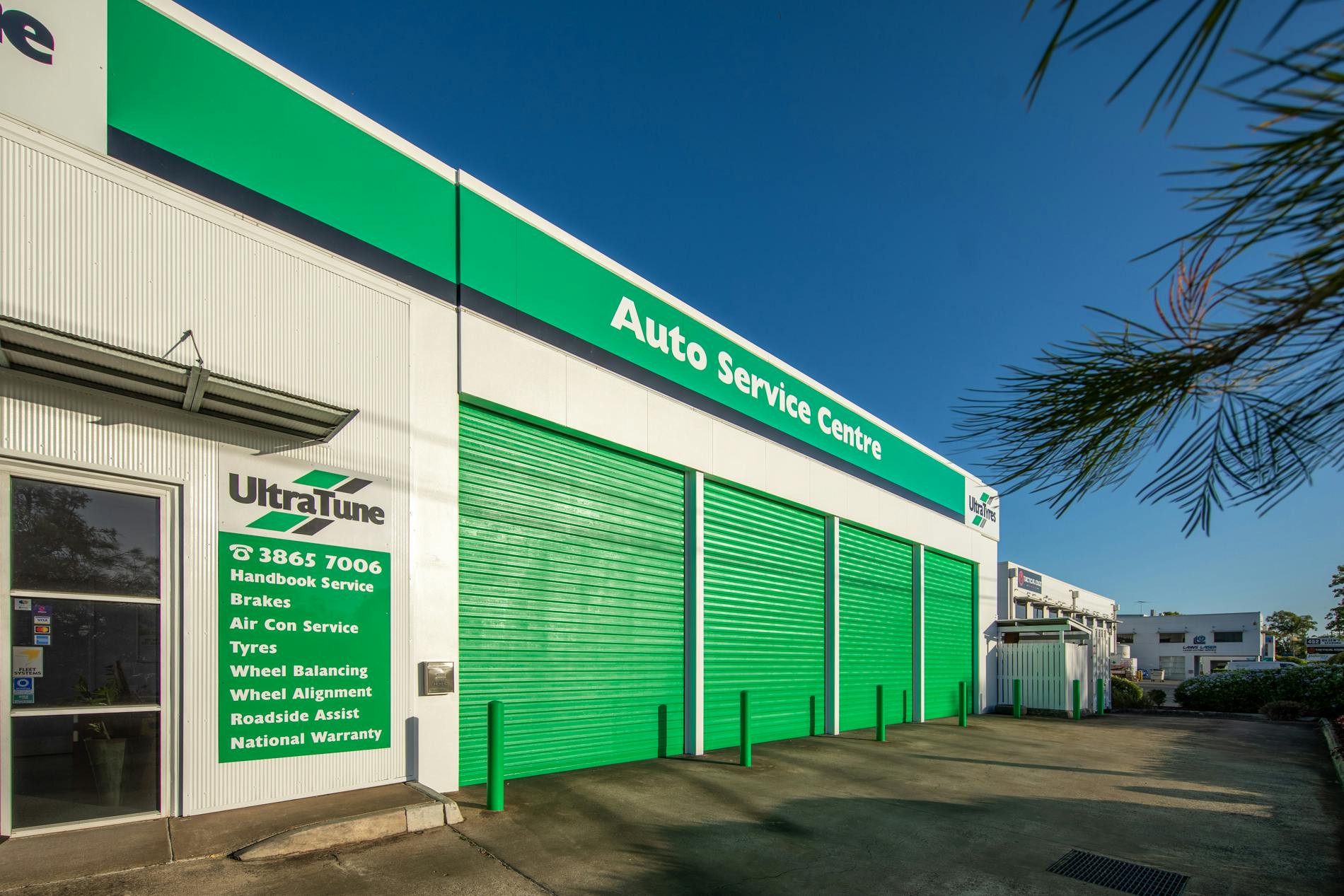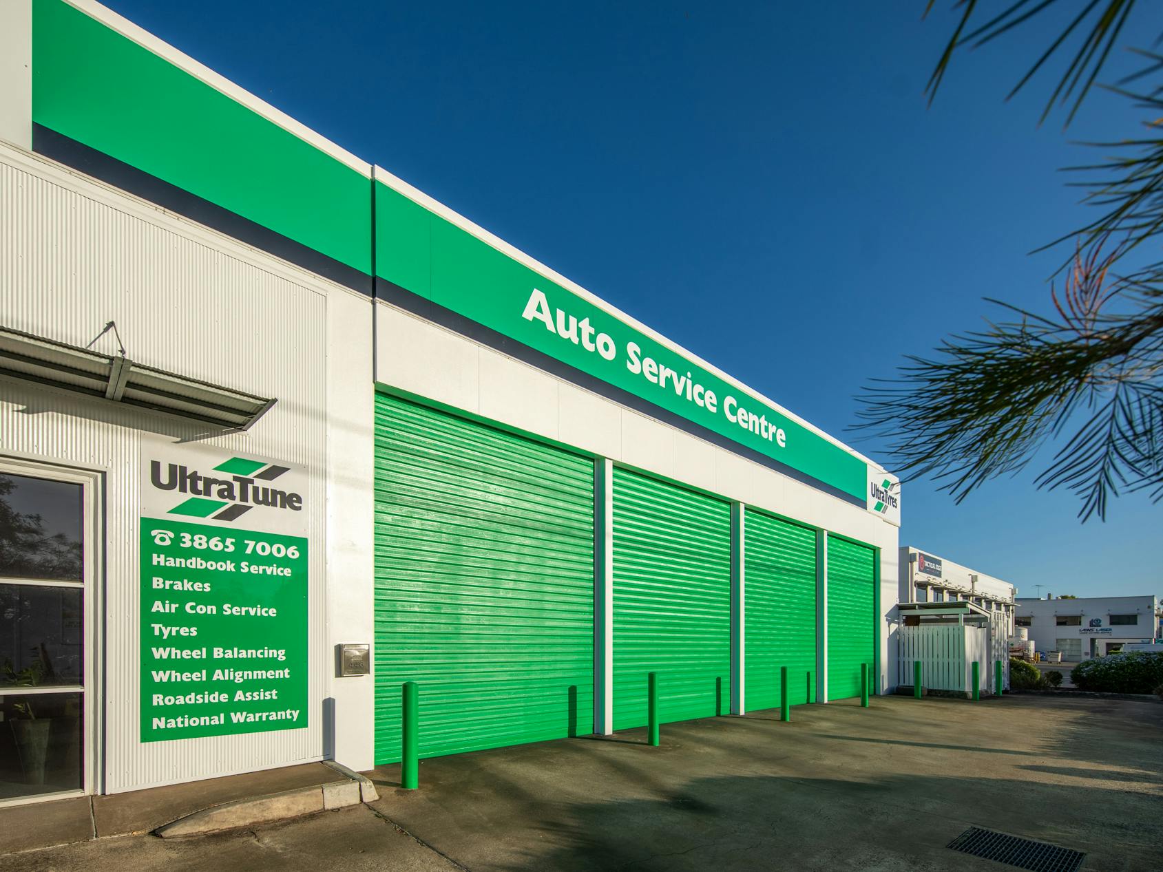 Rochele is thrilled by the completion of our latest project on this Ultra Tune in Geebung. Our team of skilled commercial painters have meticulously transformed the retail space’s exterior, focusing on the vibrant brand colour and eye-catching elements. One of the most striking aspects of the project is the bright green garage doors, which instantly draw the attention of passers by.